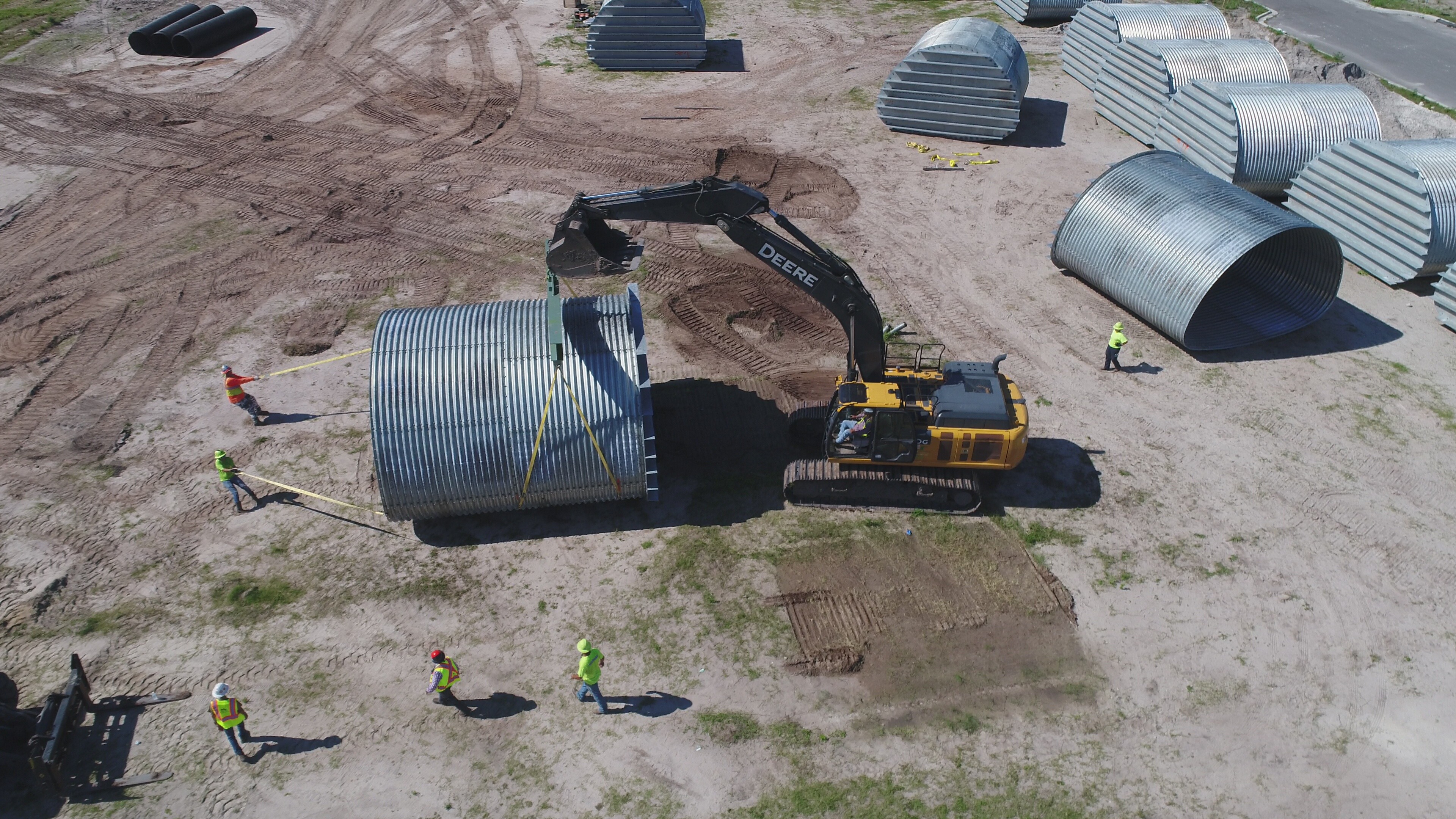 Over the last two weeks, the construction team finished the assembly of all the ConTech Arch Systems. They fabricated the rebar for building AB and started the fabrication of building CJ's rebar. The team continued to install the stone columns for building AB. Lastly, they demucked the area as necessary in preparation for the Arch System.